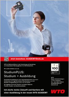 „StudiumPLUS: Studium+Ausbildung“ beginnt am 1. September mit dem ersten Jahr der Berufsausbildung zum Industriemechaniker bei WTO. Nach dem Studienbeginn im zweiten Jahr an der Hochschule Offenburg wird die Berufsausbildung parallel bei WTO und in der Berufsschule weiter geführt und durch die IHK-Abschlussprüfung abgeschlossen. Studierende durchlaufen dabei das reguläre Bachelorstudium.