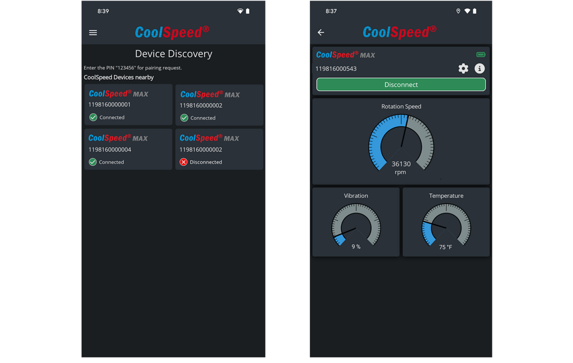 With the small turbine, maximum speeds of up to 60,000 rpm can be achieved; with the large turbine, CoolSpeed® MAX provides higher torque in the lower speed range.