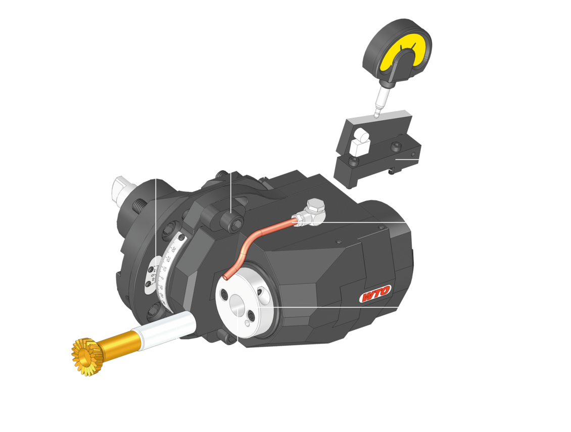 WTO 刮齿刀座提供了高刚性及高跳动精度. 主轴上的液压夹头提高了刀具更换的精度及快速.